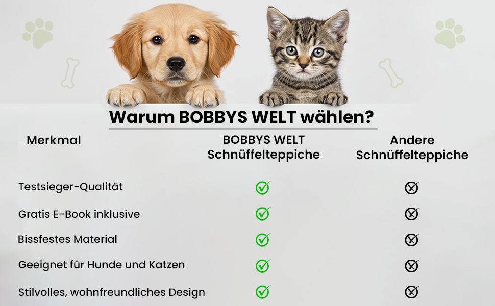 BOBBYS WELT® Schnüffelteppich [Testsieger] für Hunde & Katzen + GRATIS E-Book - Interaktives bissfestes Intelligenzspielzeug zur Förderung und Auslastung